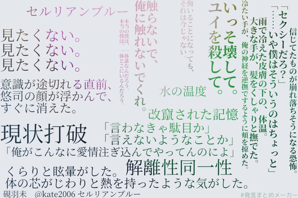 この物語には様々な魅力がありますが、その中でも特筆したいのは多様性の描き方です。同性愛や多重人格といったモチーフの他に、一般にタブーとされる行為や関係性も多く取り上げられていますが、当事者の心情と物語としての客観性が非常にバランスよく描かれていて、読み手に違和感なくそれが受け取れるような作品になっています。これは同時に、作者さんの多様性に対する目線であると感じました。